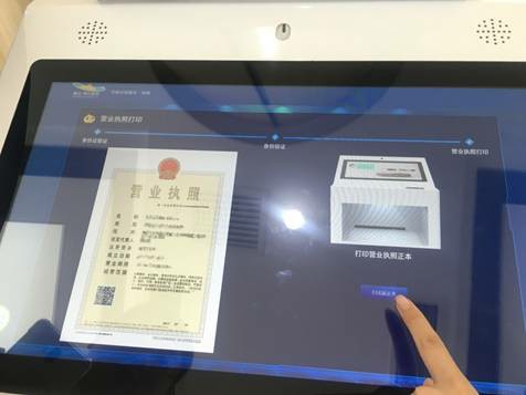 3、在自助營業(yè)執(zhí)照打印機上刷身份證打印營業(yè)執(zhí)照信息。